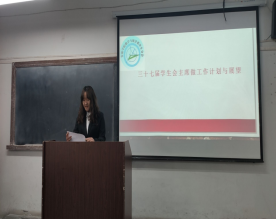 大会在主持人董老师的致辞中拉开了序幕。首先由团总支书记刘佩老师宣读了第三十七届员工会干部名单,接着由第三十六届员工会主席李希对员工会的工作做了激情洋溢的总结。最后第三十七届员工会执行主席仝紫藤在肯定员工会工作成绩的同时,指出了一年来各部门工作的不足,并对今后的工作计划做了简要的介绍。