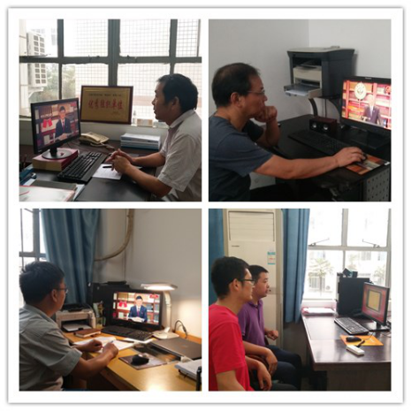 (图为公司党总支书记、经理、副经理以及教师党员观看直播)