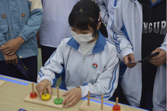 建民初中员工持入场券有序入场,在不同的游戏摊位前驻足。加减乘除24点、数独、汉诺塔、井字棋、华容道... ...有的游戏锻炼逻辑思维能力,有的游戏锻炼推理能力,有的游戏锻炼观察力,有的锻炼运算求解能力,有的锻炼抽象概括能力... ...各类趣味游戏迅速吸引了到场同学的积极参与和踊跃尝试,参与者或两两对决、或托腮凝思、或快速书写,大家都开动脑筋,活动现场充满了员工们的欢声笑语。