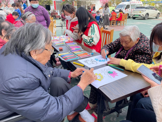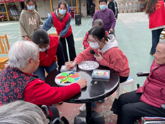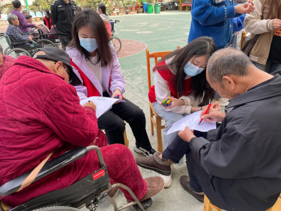 下午13:50,同学们准时在图书馆前集合并排好队,14:00准时徒步前往安康阳光爱心护理院,并于14:30准时到达敬老院。随后志愿者们通过演唱歌曲、表演手势舞等形式为所有的老人表演了精彩的节目,养老院的老人们被同学们的精彩节目深深吸引住了,不时响起热烈的掌声,活动现场的气氛十分温馨。此外,同学们还陪老人下棋、聊天,在了解了老人们的日常生活情况后叮嘱老人保重身体,保持积极乐观心态,老人们收到了同学们的关心后幸福的笑容洋溢在他们的脸上。