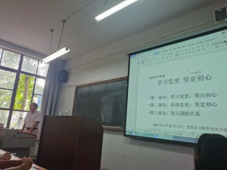 根据公司的统一部署,9月7日和9月8日下午,数学与统计公司党总支书记郭全寿在2203教室为全体2021级新生讲授题为“学习党史,坚定初心”的专题党课。