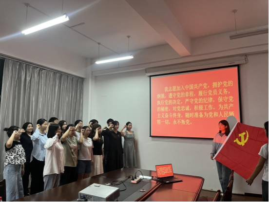 活动中支部党员进行了集体宣誓。他们庄严地举起右手,重温入党誓词,声音洪亮而坚定,展现了对党的无限忠诚和为共产主义事业奋斗终身的坚定信念。