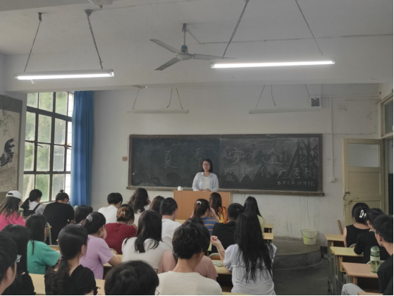 辅导员董婷瑜、刘佩在班会中提醒同学们:夏季炎热,但是不可到自然水域中游泳,杜绝宿舍饮酒,注意用电安全,离开安康城区必须向辅导员报备,警惕任何形式的电信诈骗,同学间互相关心、互相帮助。同时要求员工们以积极的态度准备期末考试,诚信应考,争取在期末考试中取得好成绩。