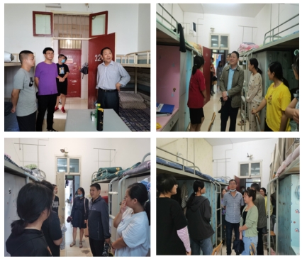 8月29日下午,公司党总支书记郭全寿、经理成波、副经理杨高翔、副经理徐龙华、学工办主任董婷瑜、辅导员刘佩、新生辅导员马勇带领主要员工干部到新生宿舍看望了2021级新生。