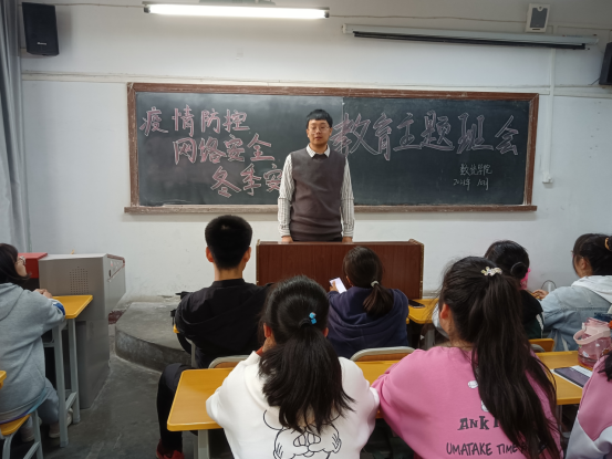 辅导员首先传达了公司关于疫情防控的最新通知精神,要求同学们遵守规定,原则上不出市不出省。按时完成健康打卡和晨午检,个人情况有异常及时向院系报备。同时对两早一晚、课堂纪律、宿舍安全进行了强调,要求大家营造良好班风,不在宿舍使用违章电器。最后辅导员提醒大家提高是非辨别能力,注意个人的网络言论,还深入浅出地讲解了电信诈骗有关的案例知识,提醒同学们下载国家反诈中心APP,不要有贪图小便宜的心理,保护好个人信息和财产安全,加强网络安全意识和风险防范意识。