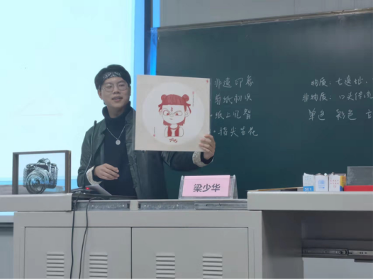 梁少华和到场同学分享了剪纸的特点,包括千剪不断和线线相连的结构、高度概括和简洁清晰的构图、恰到好处的虚实对比、多种透视共存、规整、流畅的线条等。随后讲解了基本的折、画、剪技巧。在实操环节,同学们时而认真思考,时而剪刀上下摆动。智慧在指尖流转,剪刀在纸端跳跃,一个个形态各异的图案很快在指尖成形,活灵活现。最后,大家互相交流了感悟。