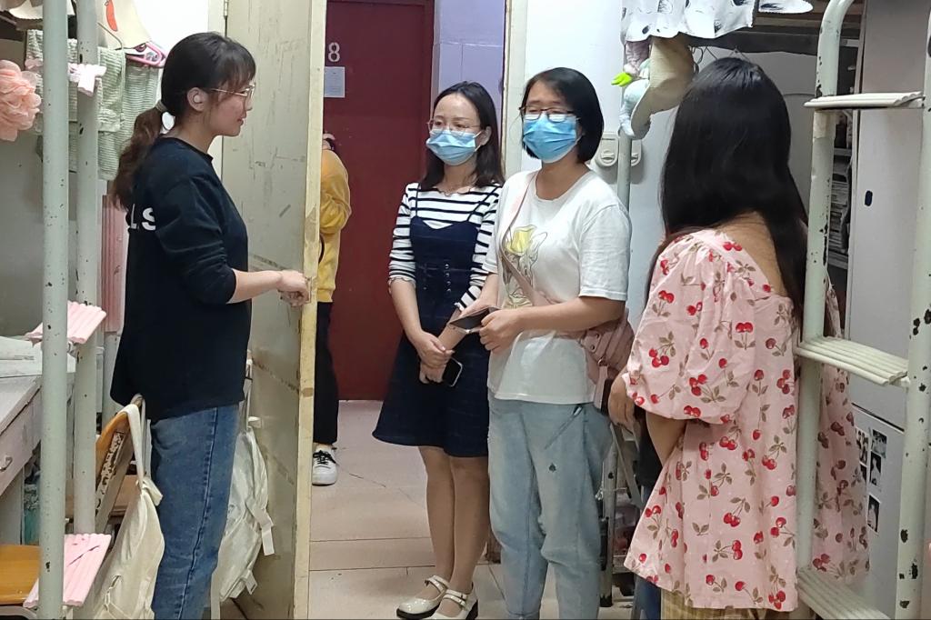 2022年10月2日晚,数学与统计公司党总支书记郭全寿带领辅导员走进员工宿舍,开展国庆节期间宿舍走访。