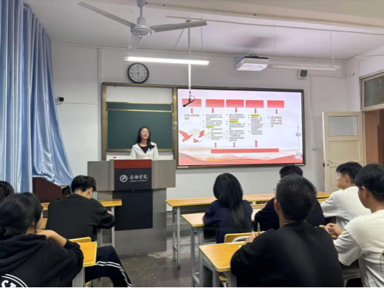 员工党支部书记董婷瑜鼓励同学们积极向党组织靠拢,听党话,跟党走,不断端正入党动机,成为有思想、有温度、有能力的新时代青年。随后向2024级新生详细讲解了递交入党申请书、成为入党积极分子、发展对象、入党、转正的流程,梳理了各阶段的基本要求。员工党员杨谨分享了她的成长历程,她表示,“行动是青年最有效的磨砺”,号召大家始终对自己高标准、严要求,努力学习专业知识,积极参与各类活动和学科竞赛,不断成长,以实际行动争取早日入党。