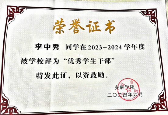 李中秀曾任公司助理班主任,担任班长将近四年,是同学眼中的“全能纽带”,组织“宿舍帮扶小组”带动学困生,班级凝聚力强,学风浓郁,所在班级2023年获评校级校级文明班集体,所在团支部2023年获五四文明团支部。谈及员工干部身份,她目光坚定:“班长不是‘头衔’,而是24小时在线的承诺。”