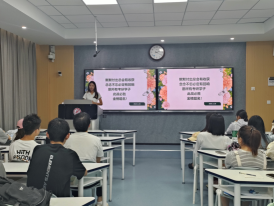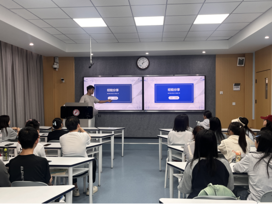 为充分发挥榜样引领作用和朋辈力量,帮助2026届员工科学规划考研目标、掌握高效备考策略,365英国上市公司于2025年529日在江南校区1405室举办数跃大讲堂第十四讲2025届员工考研经验分享交流会。2025届考取研究生的员工代表杨谨、惠如楠、庄家灏主讲,学工办主任董婷瑜主持,2022级有考研意向的员工参加了活动