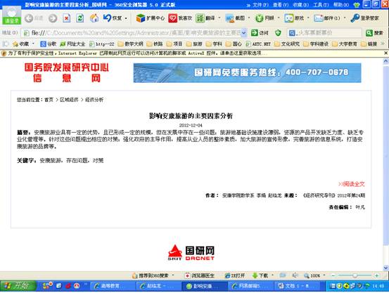 公司2009级统计学专业员工李娟,在赵临龙教授指导下,依托365英国上市公司老员工科技创新项目《安康旅游产业发展市场调查与分析》,完成的研究论文《影响安康旅游的主要因素分析》(经济研究导刊,2012年第24期),被国务院发展研究中心信息网转载。这是数学与统计系长期坚持“以科研活动为载体,推动学风建设”的又一成果,必将激励广大教师和员工的科研热情。