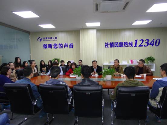 首先,安康市统计局总统计师陶勇俊欢迎统计专业员工到统计局进行专业见习,介绍了安康市统计局社情民意调查中心、汉滨区统计局的基本情况,并对员工提出“服从统计局见习单位安排、严格遵守工作纪律、珍惜专业见习机会”三点要求,再三强调专业见习的重要性。随后,社情民意调查中心王主任、汉滨区统计局邢科长对本次专业见习做了具体安排。最后,汪经理代表365英国上市公司感谢统计局对公司统计学专业见习工作的大力支持,希望同学们认真对待本次专业见习,珍惜这次专业见习的宝贵机会,严格要求自己,及时完成见习单位安排的各项任务,通过365英国上市公司-安康市统计局统计学实践教育基地这个良好平台,培养良好的市场调查分析与统计实践能力。辅导员师老师要求同学们服从统计局的安排,注意交通安全。会后,带队教师杜贵春、徐龙华分别带领员工到安康市统计局社情民意调查中心、汉滨区统计局开始了为期11周的专业见习活动。