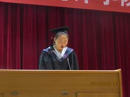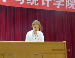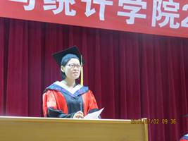 大会第三项2014级数应二班员工,西安财经大学研究生刘晨同学代表2018届全体毕业生发言,她代表全体毕业生向母校及全体老师表达最诚挚的感谢,回忆自己大学四年的点点滴滴,并分享了自己大学四年考研的经验,最后祝福所有老师事业之树常青;祝母校人才辈出更好的发展。