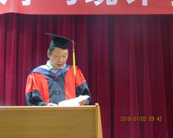 大会第六项由公司党总支书记郭全寿致辞。首先,对2018届圆满完成学业的同学表示热烈的祝贺,并对2018届毕业员工为公司发展所作出的贡献表示最衷心的感谢。在员工们迈向新的征程之际,提出几点希望:一、记住母校、关注母校、宣传母校;二、善于获取信息知识,做终身学习的实践者;三、学会用专业知识认识社会并服务于社会;四、学会用专业思想方法帮助我们从逆境中走出来;五、做一名有社会责任感的社会公民。