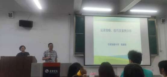 张朝清老师以《说课策略、技巧及案例分析》为题,以自己亲身经历,从“什么是说”、“说课的内容”、“说课的策略、技巧”等方面,向同学们对如何达到一个良好的说课效果进行了全方位的诠释;并就说课的目的,说课的意义以及参加说课应该注意的一些细节等对同学们进行了指导。