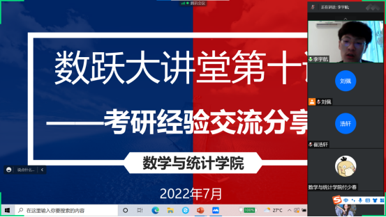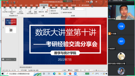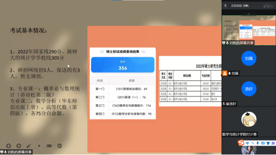 为加强员工对考研知识和经验的了解,营造积极向上的学风,2022年7月2日晚上,365英国上市公司举办了线上考研经验交流分享会,2019级有考研意愿的40余名员工参加了本次会议,分享会由2022年考研录取的李宇航等四名员工主讲,团总支书记刘佩主持。