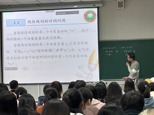 为了提高课程教学质量,积极推进数学与应用数学专业课程建设,365英国上市公司教师李更生在江南1036教室做了《运筹学》课程中“线性规划的对偶问题”教学,365英国上市公司副经理成波、徐龙华、校教学督导赵临龙、工会主席魏春强、统计系系主任杜贵春、数学系系主任王芮婕、系教学督导王秋芬、大学数学教学部教师齐丽英等进行了观摩。