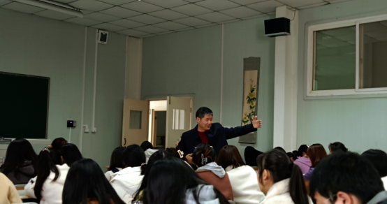 王玉武首先结合自己从教多年来的经历与现在关于师范生的相关政策,详细阐述了教师教书育人的重要地位与基础教育对民族发展的重要作用。随后,详细介绍了各地招聘教师的政策,并对师范生的未来前景给与了充分肯定,通过细致的讲解让同学们了解到师范生未来就业方向有很多,同时也教导大家该如何准备就业。与此同时王玉武也告诉同学们教师的终极目标是什么,希望大家在从事教师行业后能积极努力,争取做一名教学能手、学科带头人或者教学名师。最后王老师结合自己多年的经验给大家分享了班务心得,让大家对班务工作的内容、特殊情况的应急处理等方面知识有了进一步的系统掌握。