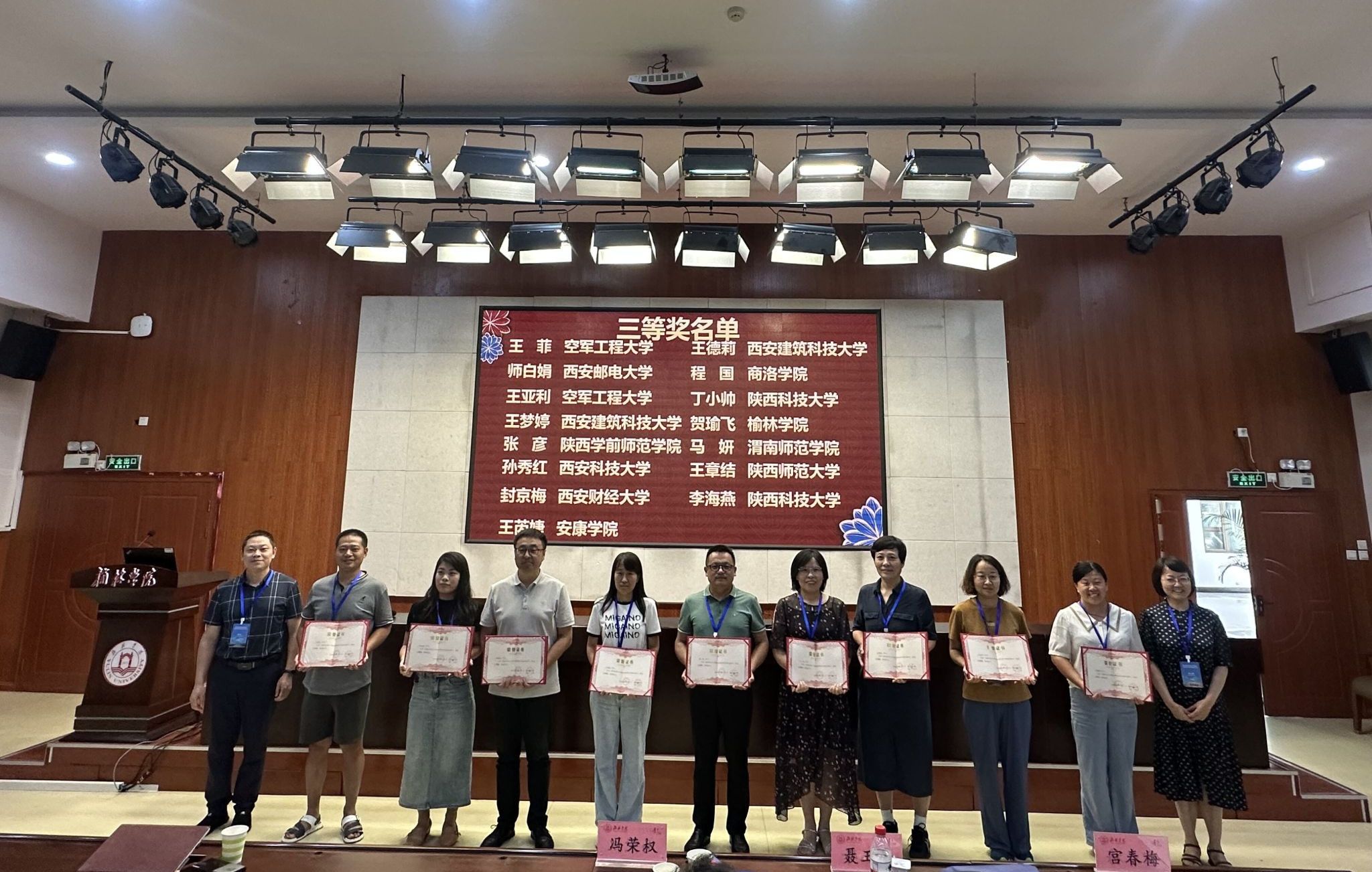 专题报告阶段,会议特邀教育部高等公司大学数学课程教学指导委员会北京大学冯荣权教授、天津大学史国良教授、西北工业大学张莹教授、西北大学陆克胜教授、西安理工大学陈娟娟教授、西安工业大学伏文清教授、西安建筑科技大学王艳副教授、公司马崛副教授分别做了题为“线性代数课程的教学思考”和“新工科数学课程体系的初步探索”“持之以恒,革故鼎新——高等数学国家级一流课程建设与申报”“数学文化:面向思政的文科数学课程改革与实践”“浅谈OBE理念下地方高校《高等数学》课程教学改革与创新”“大学数学公共课程建设的探索与实践”“大学数学一流课程建设的探索与实践”“新工科背景下地方本科高校高等数学课程课堂教学创新实践与探索”的报告。会议期间还为第三届陕西省大学数学课程教学创新竞赛获奖者、以及获优秀组织奖单位颁奖。