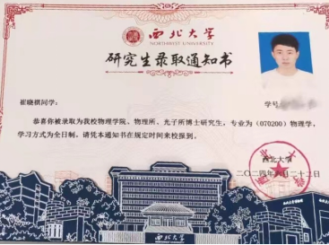 2024年顺利毕业,并且考取西北大学物理学博士,继续开展微分方程的研究。