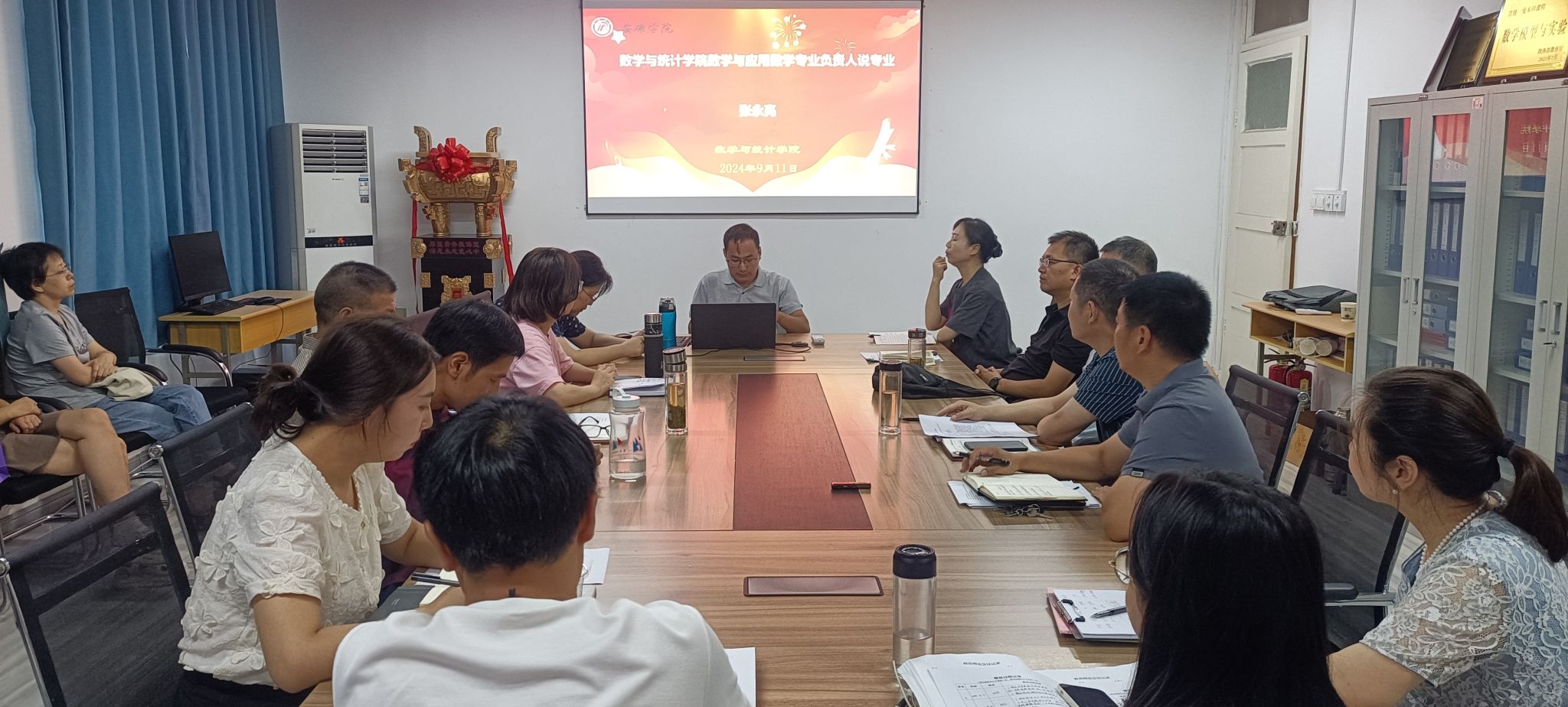 数学与应用数学、统计学专业负责人围绕专业建设思路,汇报培养目标、毕业要求、课程体系、团队队伍、教学科研、教学成果等方面的建设举措与成效,专业特色与优势,存在问题及改进措施等内容说专业。