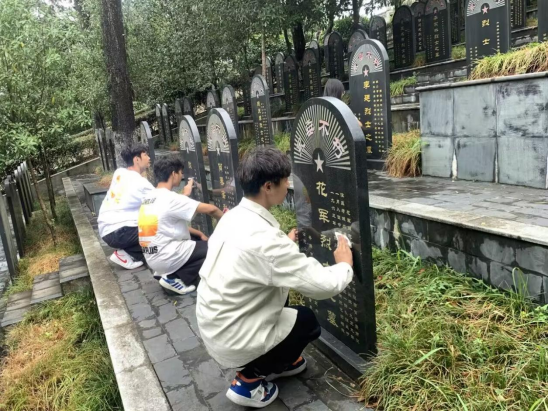 同学们身着统一服装,手持鲜花,整齐列队步入烈士陵园。在陵园中央的纪念碑前,全体师生肃立,低头默哀、敬献鲜花、擦拭墓碑。活动最后全体同学重温了入团誓词,庄严的入团誓词表达了同学们坚定为国家和民族的繁荣富强贡献力量的决心和信念。