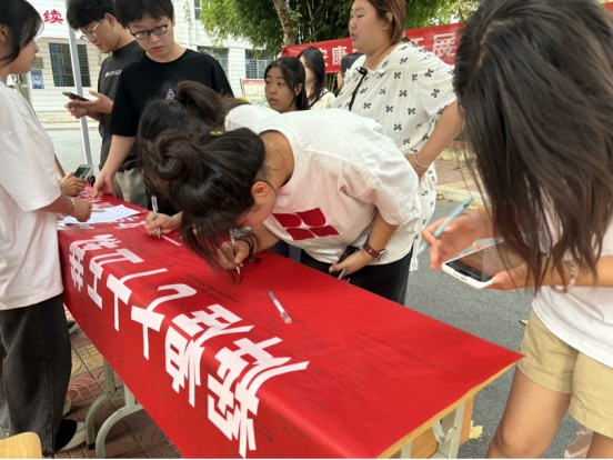 员工们手持彩色笔在横幅上郑重地写下“祖国万岁”、“我爱祖国”、“祖国母亲,你是我永远的骄傲”、“愿祖国明天更加美好”等美好祝愿。员工们通过按手印的形式绘制了一幅天安门图案,每一个手印都代表着一个员工的心意和力量。