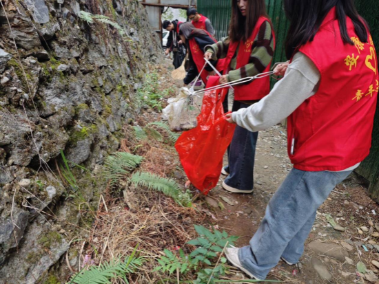 同学们身着志愿红,走出校园、走进社区、走上街头,通过集中道路清理、小广告清理、门前四包、交通文明劝导、“三问到万家”等活动形式践行文明之责、传播文明之风。