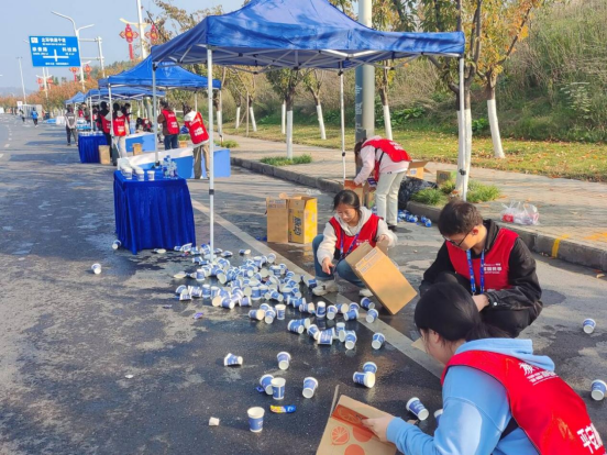 比赛当天志愿者们始终保持饱满的精神面貌为参赛选手提供指引、加油助威,并随时关注选手的身体状况,确保安全。赛后进行场地清理、物资回收等工作,展现了高度的责任心和团队协作精神。