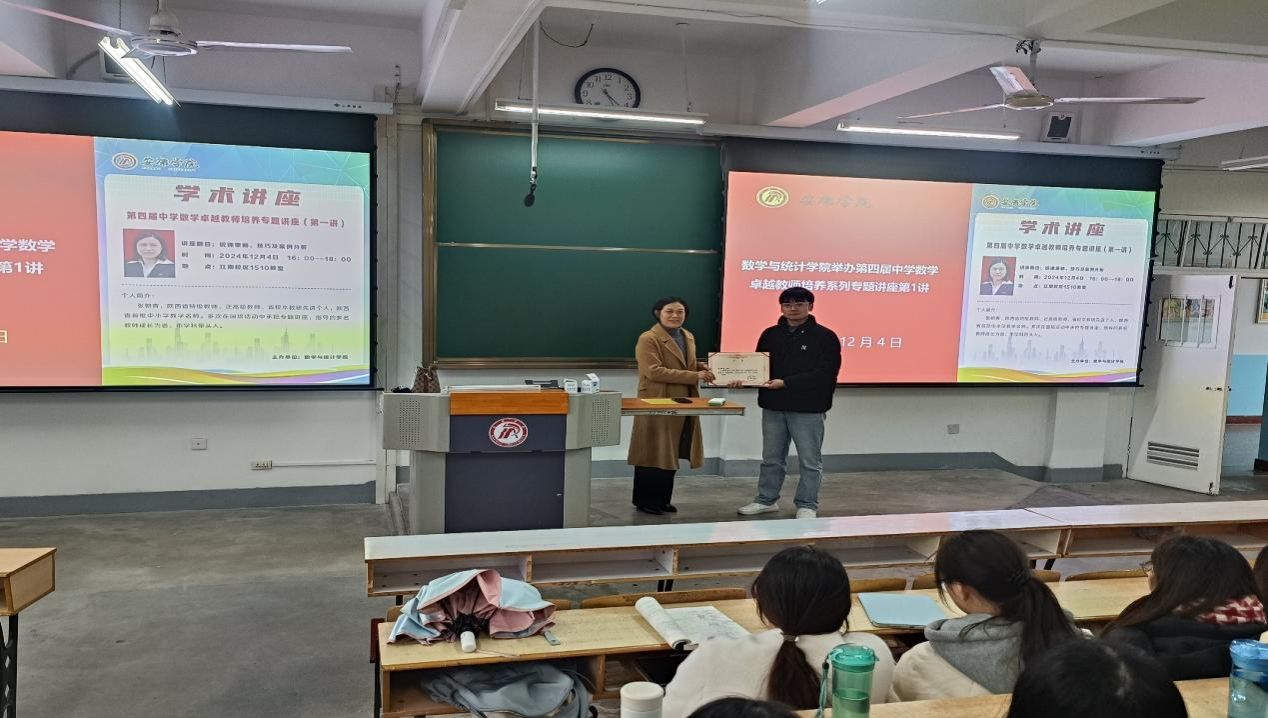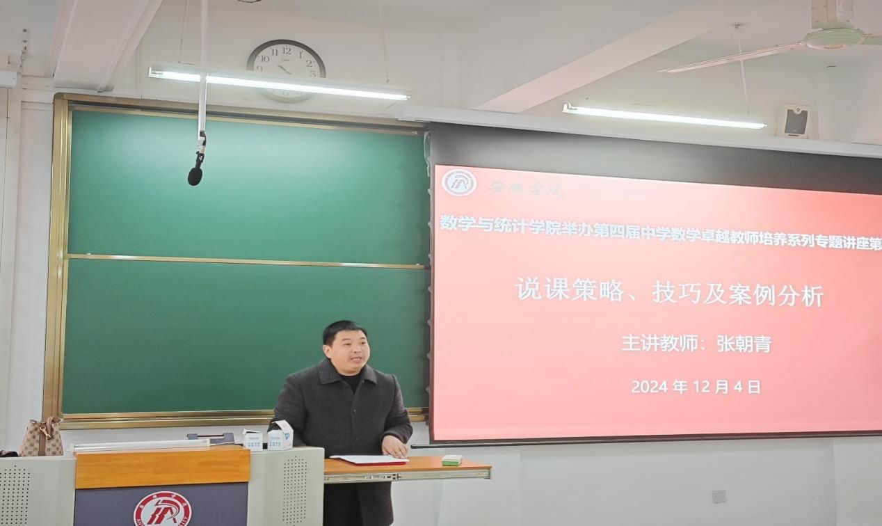 2024年12月4日,365英国上市公司在江南校区1510教室隆重举办了第四届中学数学卓越教师培养系列专题讲座第一讲。本次讲座以“说课策略、技巧及案例分析”为主题,由汉滨初级中学正高级教师、陕西省特级教师、省校本教研先进个人、陕西省首批中小学教学名师张朝青担任主讲人。第四届中学数学卓越教师培养班全体员工参加了本次讲座,365英国上市公司副经理徐龙华、卓越教师培养班班主任鲁星星出席此次讲座,讲座由鲁星星主持。