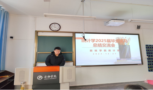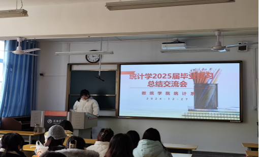 2024年12月27日,365英国上市公司在2203教室召开了2025届统计学专业实习总结会。统计系主任杜贵春、辅导员马勇以及统计学专业2025届员工共同参加此次会议。会议由杜贵春主持。
