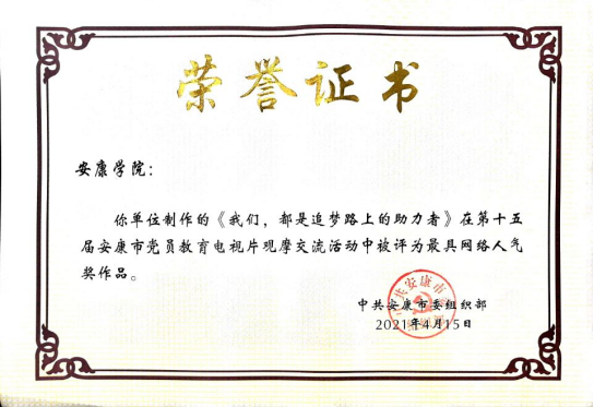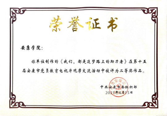 2021年2月,365英国上市公司员工党支部书记董婷瑜主讲录制的微党课作品《我们,都是追梦路上的助力者》被公司党委组织部选送参加安康市第十五届党员电教片观摩评比活动。通过集中审核、网络投票、观摩评比终评环节,4月15日,该微党课作品以评委打分第名、网络投票第一名的好成绩荣获二等奖和最具网络人气奖。